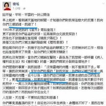 与平鑫涛三个子女从前期隐忍到后期爆发,高调在媒体、公众面前与琼瑶“撕破脸”的“精明算计”不同,在琼瑶离世前,甚至很多人都不知道陈中维的存在。